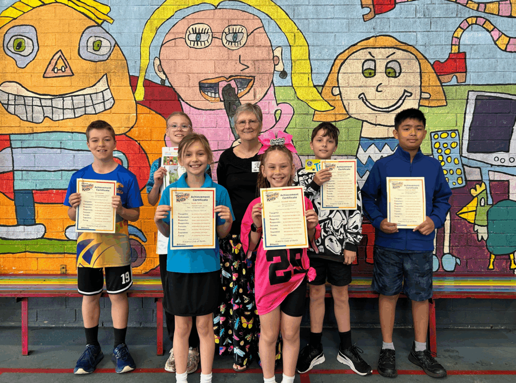 Kiwanis International developed to literacy programs for primary school children called Bring Up Grades and Terrific Kids. Through the Kiwanis Club of Perth a combined total of 92 certificates were funded and presented to children from Noranda Primary School and Redcliffe Primary School in 2024.